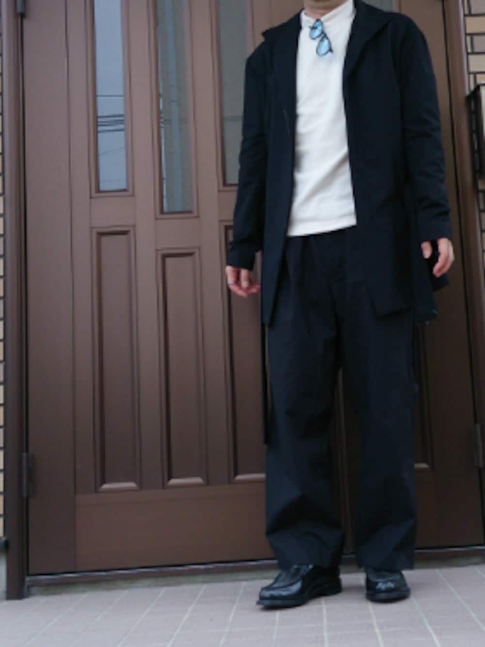 今日はatoのコートに ハイネックTシャツ捨ててしまって持ってなかったんでユニクロのフリースモックネックT でもまだフリースは早かった。暑い! パンツはSENSE OF PLACEのワイドパンツ