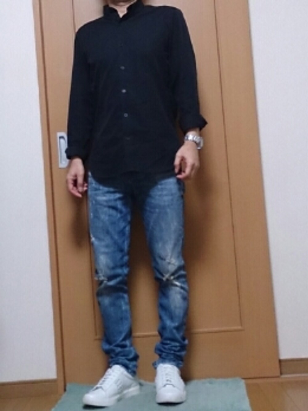 3連休第一日目♪ 今日はあいにくの雨 朝まで仕事で眠い! さてコーデ 少し肌寒くなってきたけどまだシャツイチでいける(^^) シャツはUNIQLO AND LEMAIREの黒に近いネイビーのシャツ モードっぽく着れる ZARAのダメージスキニージーンズ 白のレザースニーカー 眠いけど、髪を切ってユニクロ行ってきた(^^) ダメージジーンズが限定価格だったので (^-^)v ダメージジーンズは何本あってもいいよね(^^)d