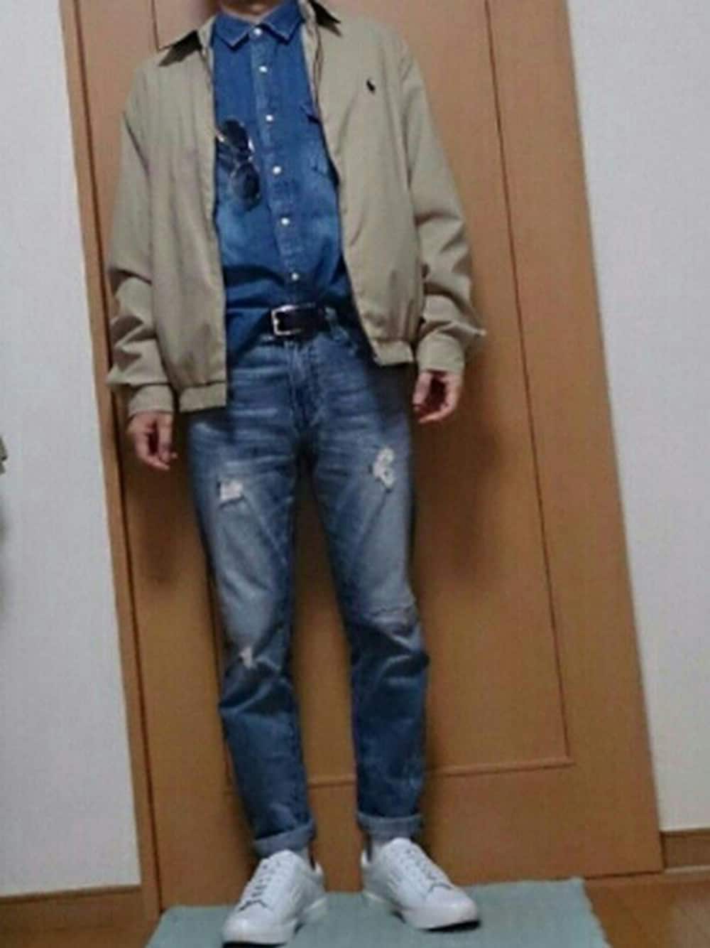 おはよーございます♪ 今日は寒いけど晴れ。紅葉でも見てきます(^^) さてコーデ。 GUのデニムシャツにユニクロのダメージジーンズ 前だけをin シャツのボタンは全留めだけどものすごくキツい(--;) 首太いのかな~(^^; ラルフローレンのスウィングトップで防寒を。 白ソックスにレザースニーカーは白で決め、サングラスで外国人コーデっぽくしました。 紅葉ドライブ楽しんできます。 皆様もよい日曜日を♪