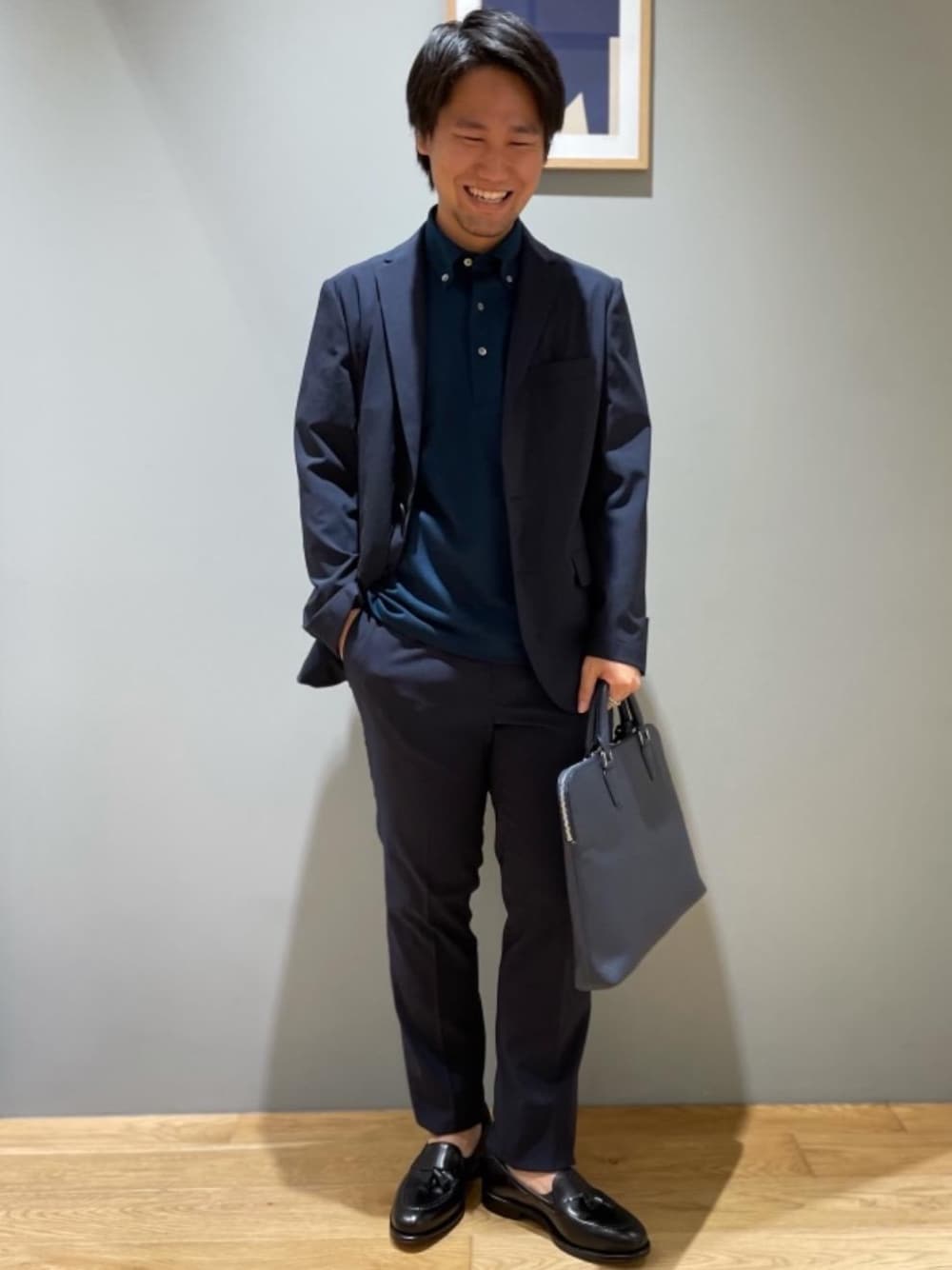 ●身長:164cm ●普段サイズ:ジャケット S/インナー S/パンツ S 【サイズ感】 ジャケット:標準的 インナー:やや細め パンツ:やや細め 【コーディネートポイント】 クールビズを意識してジャケット無しでも様になるポロシャツスタイルにしました。暑い夏をしのぐための扇子などのアイテムもおすすめです。