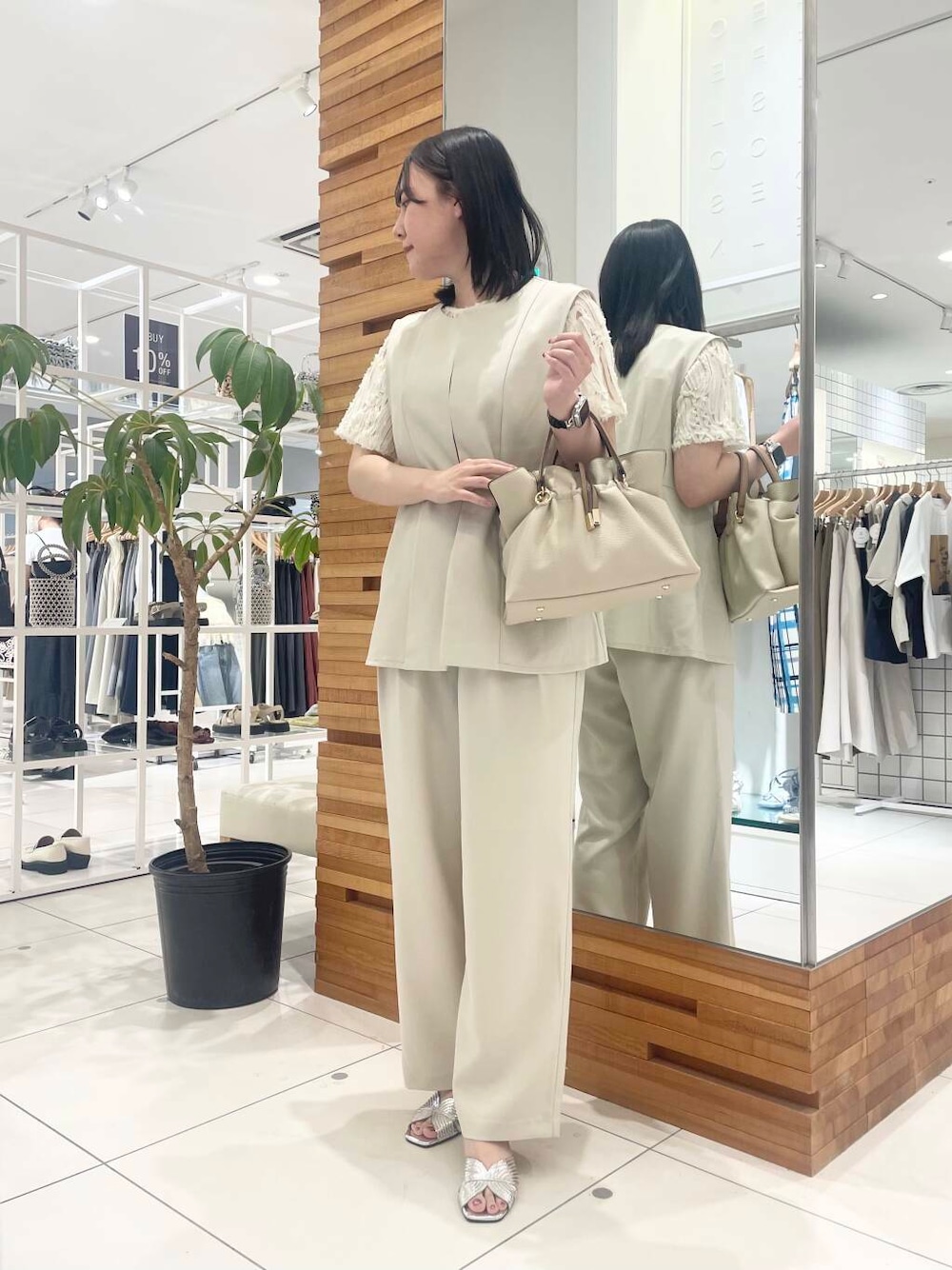 nana(SENSE OF PLACE イオンモール岡山)のハンドバッグ「ギャザータックバッグ」を使ったコーディネート