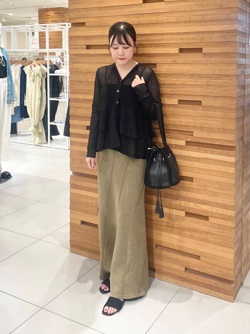 nana(SENSE OF PLACE イオンモール岡山)のカーディガン/ボレロ「シアーペプラムカーディガン」を使ったコーディネート