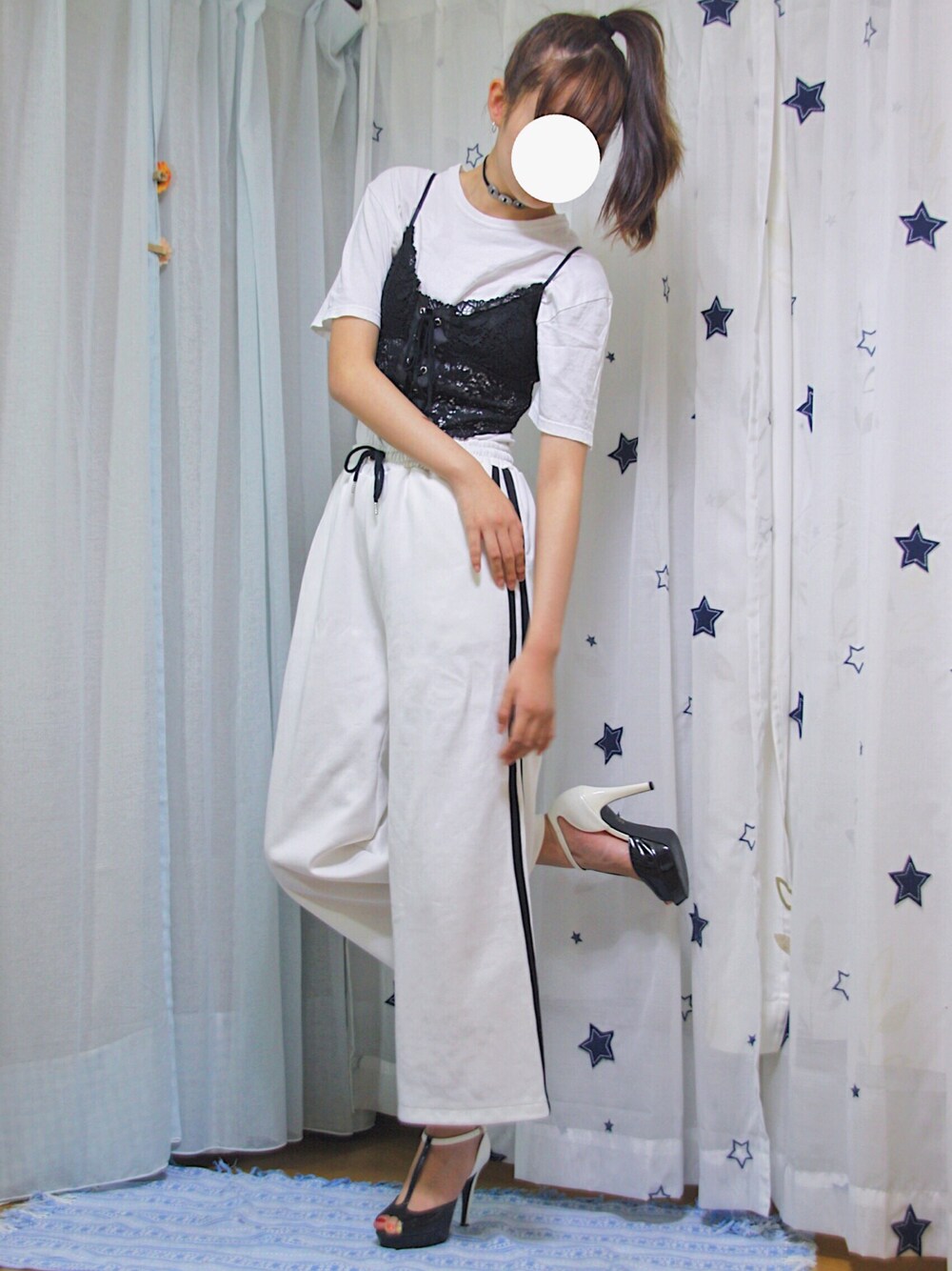 コーディネート見て頂きありがとうございます🙇 黒のキャミソールの前のあみあみが凄い可愛いんですよね…🙈 モノクロコーデにしてみました🐼
