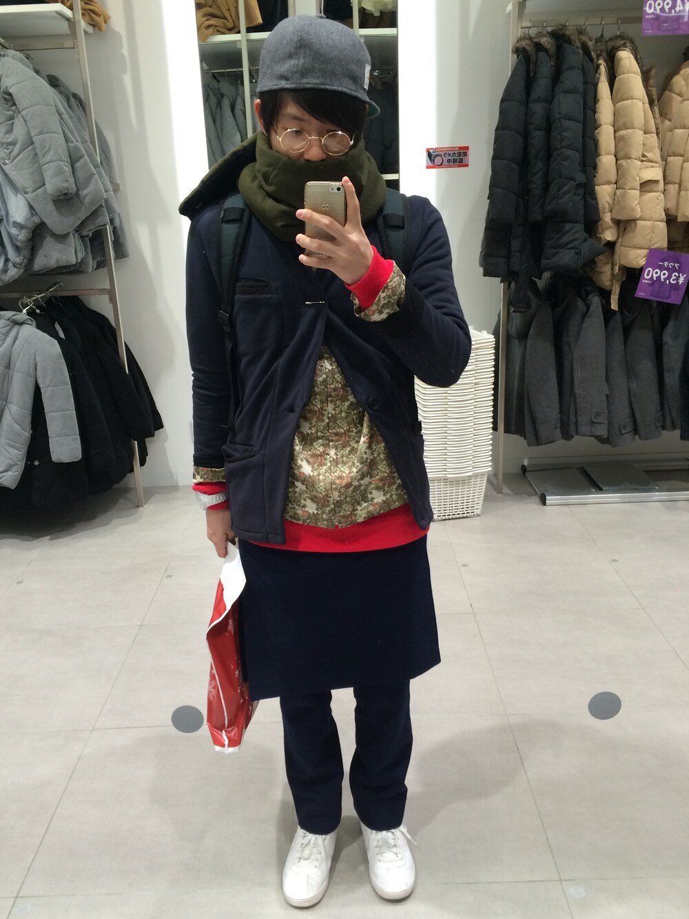 寒いですねー 本日はジャケット2枚着てみましたー 柄のジャケットの上から羽織っているのがスウェットジャケットです! ポイントとしてはジャケットと見えないようにジャケット上側に安全ピンをつけることでコートっぽくみせています。