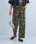 【サイズ感】 ベスト:標準 タンクトップ:フィット感あり パンツ:標準 シューズ:標準 【コーディネートポイント】 秋にかけて使える落ち着いたカラーのプリントパンツを主役にした、大人カジュアルスタイリングです。 フリンジデザインのベストを合わせて、シックな中に華やかさをプラスしました。インナーを長袖に変えると秋冬にも活用できるベストです。