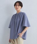 【サイズ感】 ブラウス:ややゆとりあり パンツ:標準 シューズ:標準 【コーディネートポイント】 フェミニンな雰囲気のギャザーブラウスを、ワイドパンツと合わせて甘さを抑え、すっきりとコーディネートしました。 初夏まで長く着回せるブラウスです。 明るいカラーのバッグで春らしい雰囲気をプラスしました。