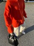 オレンジニット×ホワイトコーデ ニットの中にタートル着ることで可愛いらしめに⁉︎ ホワイト足袋ブーツが可愛いんです〜🤍
