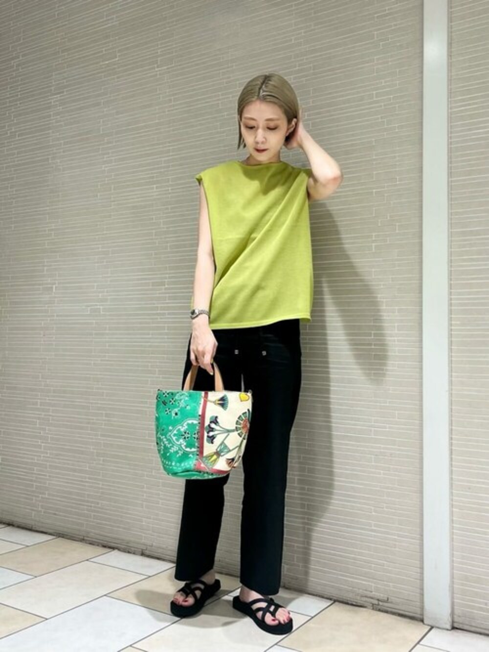 仲(naka)(ユナイテッドアローズ 新宿店)のニット/セーター「シアー フレンチスリーブ ニット」を使ったコーディネート