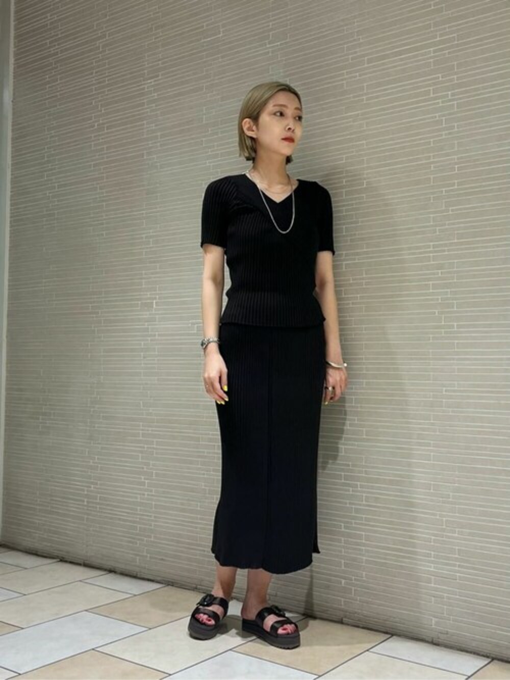 仲(naka)(ユナイテッドアローズ 新宿店)のスカート「C/P フィット リブニット スカート」を使ったコーディネート