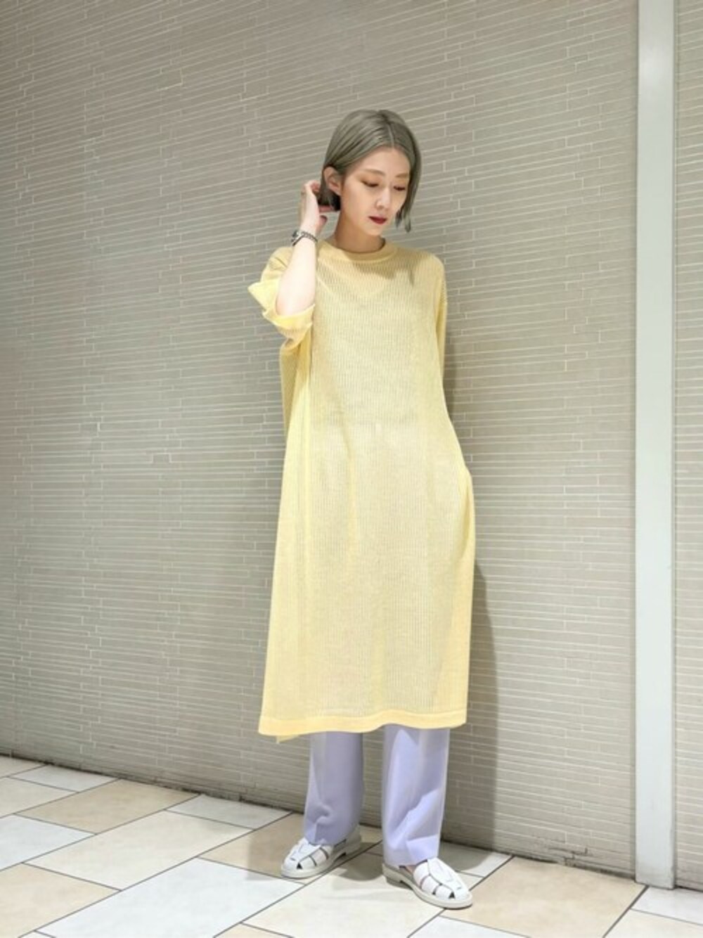 ●身長 163cm ●年齢 40代 ●サイズ トップス・ワンピース:38(M) ボトムス:36(S) シューズ:36h(23.5cm) 【サイズ感】 ワンピース/標準的です。 パンツ/ゆったりしています。 【コーディネートポイント】 ペイルトーンで合わせて華やかな印象にまとめました。