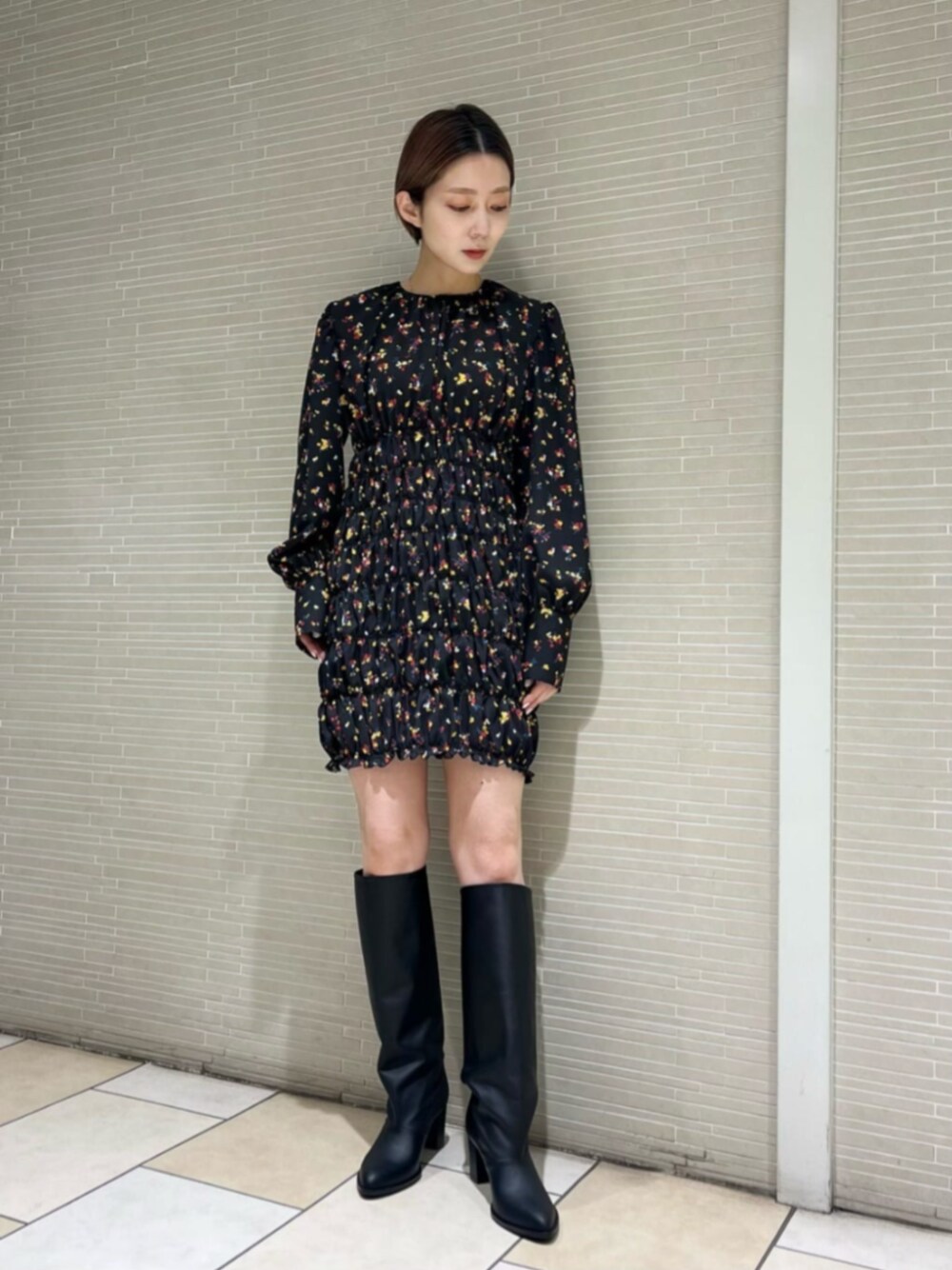 仲(naka)(ユナイテッドアローズ 新宿店)のワンピース「<H>FLOWER PRINT SHRRING DRESS/ワンピース」を使ったコーディネート