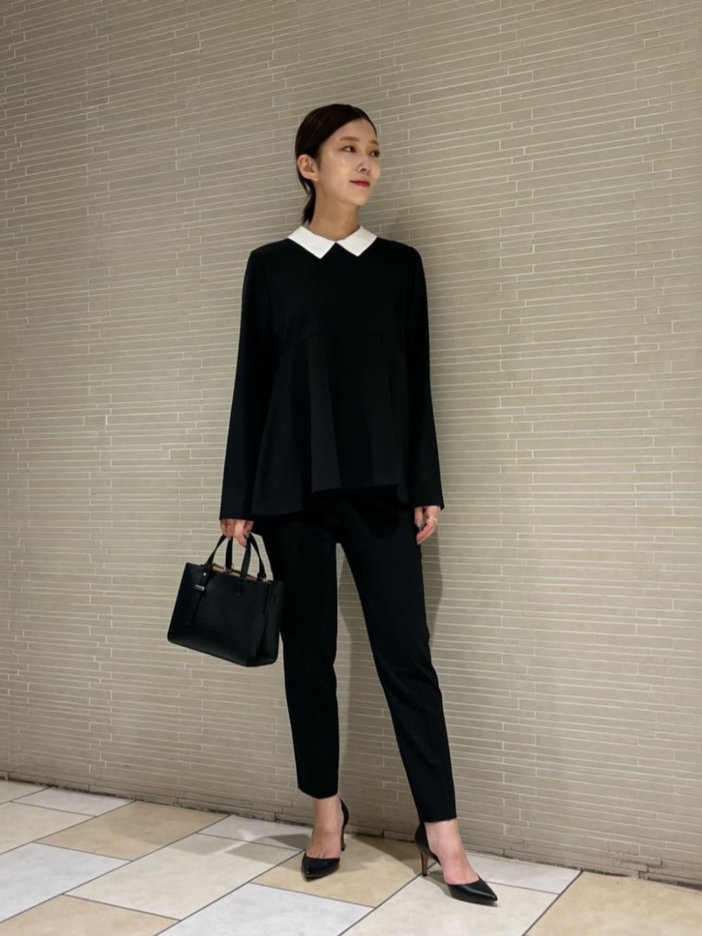 仲(naka)(ユナイテッドアローズ 新宿店)のパンプス「ポインテッドトゥ サイドオープン パンプス BLACK」を使ったコーディネート