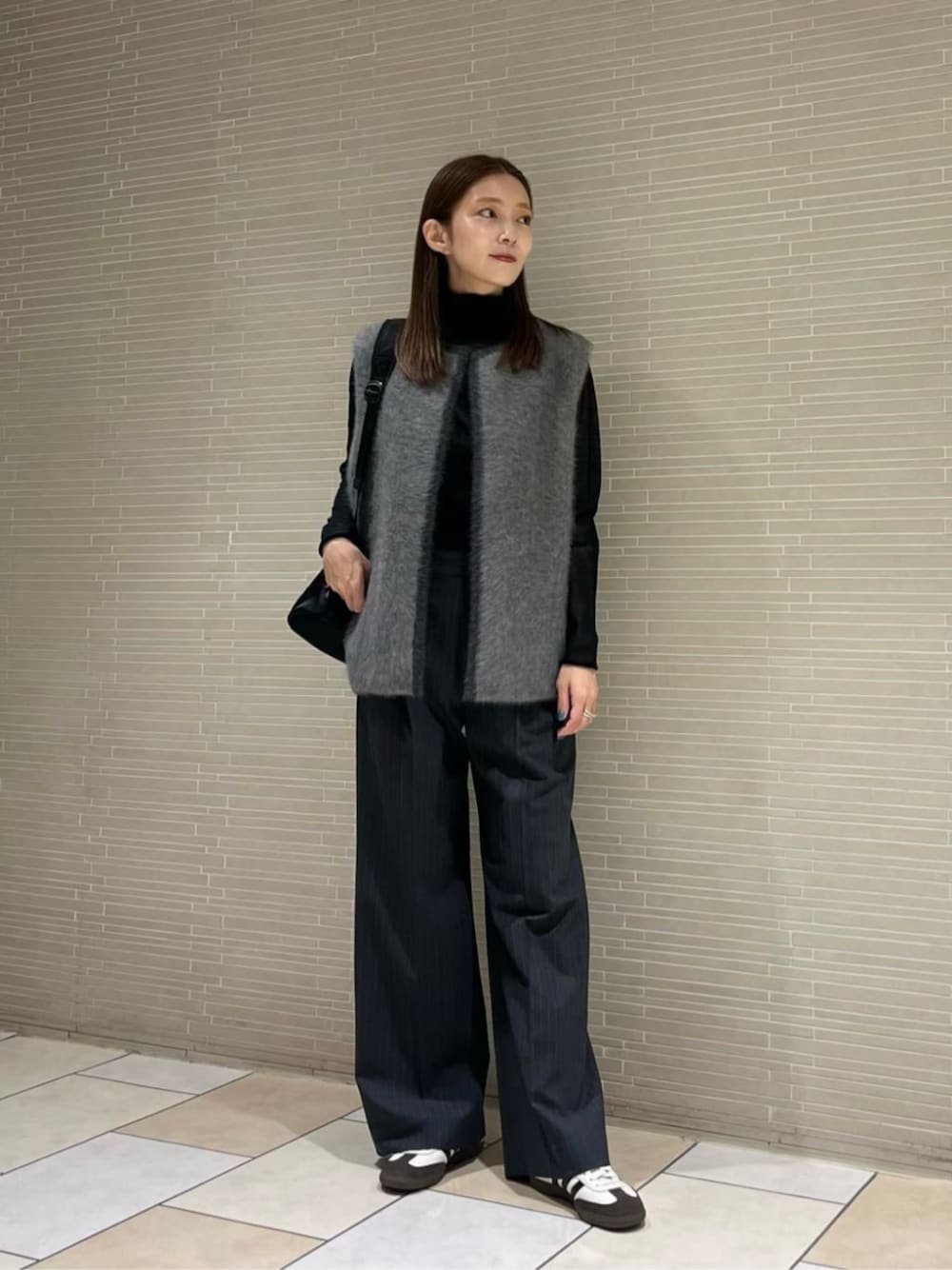 ●身長 163cm ●サイズ トップス・ワンピース:38(M) ボトムス:36(S) シューズ:36h(23.5cm) 【サイズ感】 ベスト/標準的です。 ニット/標準的です。 ボトムス/標準的です。 【コーディネートポイント】 リュックとスニーカーでオフィスカジュアルにコーディネートしました。