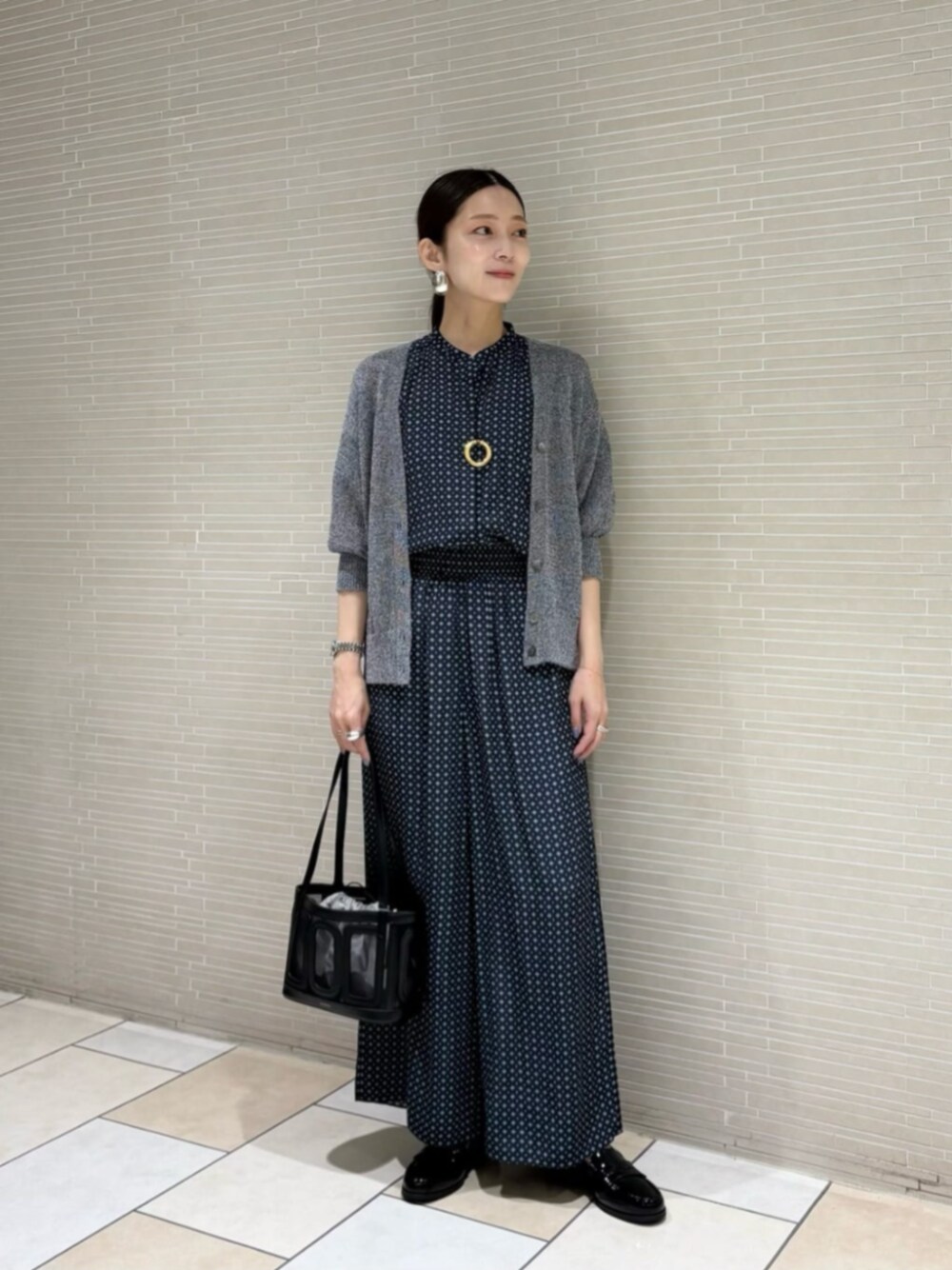 ●身長 163cm ●サイズ トップス・ワンピース:38(M) ボトムス:36(S) シューズ:36h(23.5cm) 【サイズ感】 ブラウス/標準 カーディガン/標準 ボトムス/標準 【コーディネートポイント】 サラッとした肌触りでリラックス感のある着心地のセットアップは、光沢のある素材とドレープ感がキレイめな印象に見えるアイテムです。肌寒く感じた時はカーディガンなどをあわせてもバランス良くお召しいただけます。