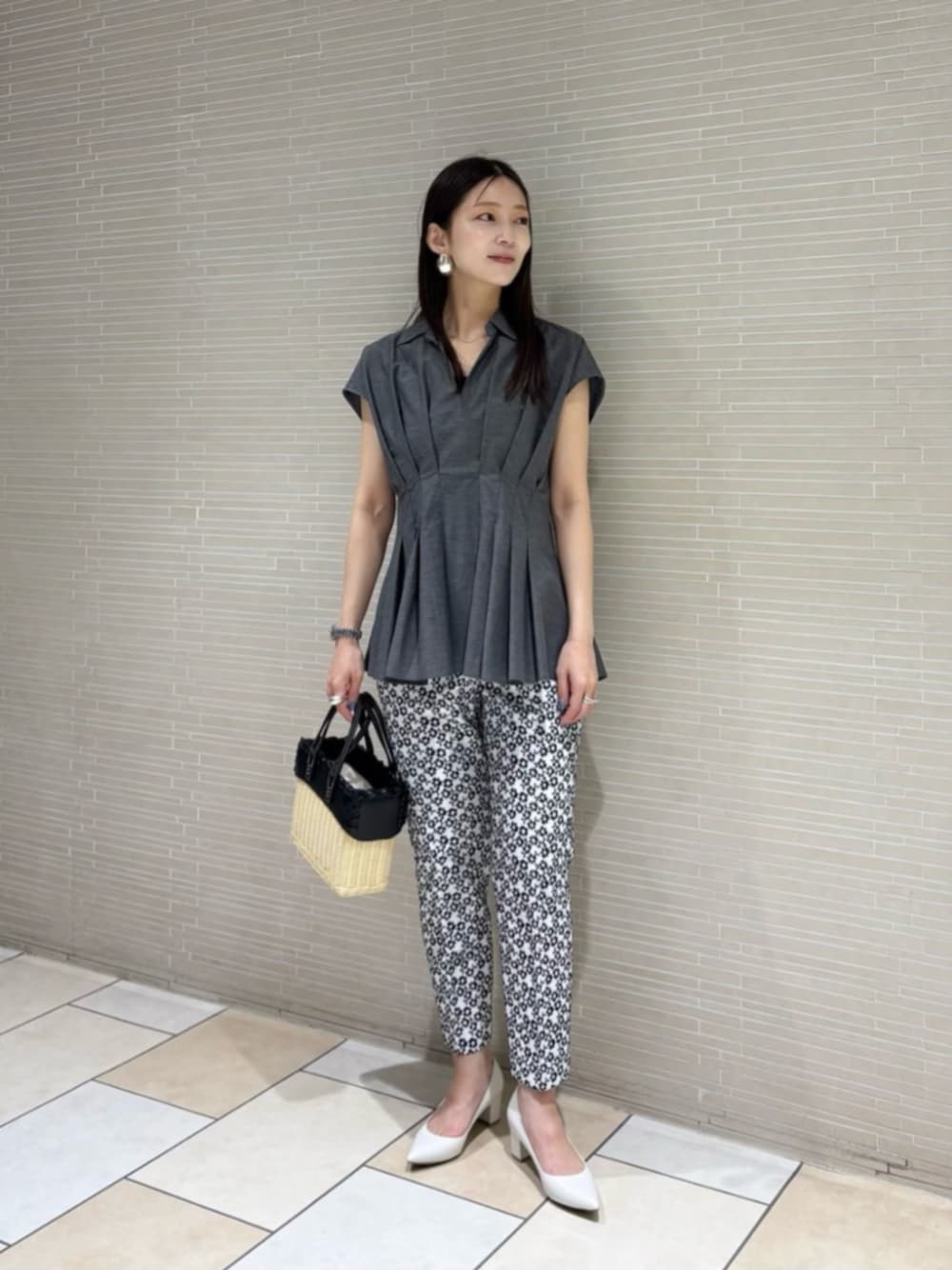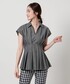 ●身長 163cm ●サイズ トップス・ワンピース:38(M) ボトムス:36(S) シューズ:36h(23.5cm) 【サイズ感】 トップス/標準 ボトムス/細身のシルエット 【コーディネートポイント】 ウエストの高めの位置にデザインがあるため、スタイルアップ効果のあるブラウスを細身のパンツにヒールをあわせてスッキリとコーディネートしました。