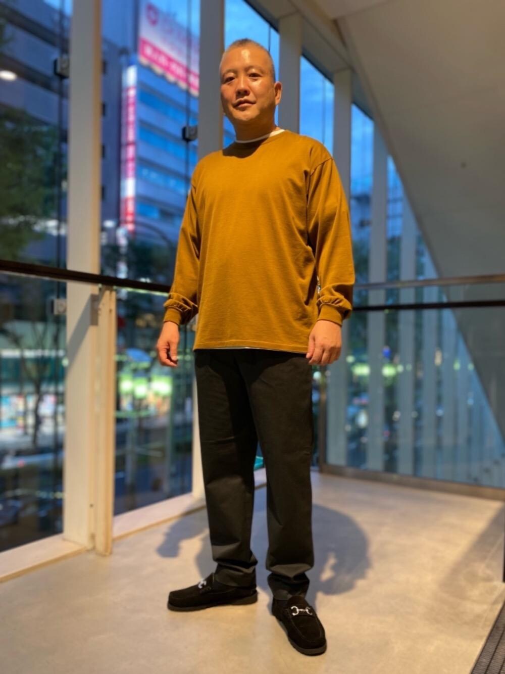 ●身長:173cm ●普段のサイズ:LARGE 48、シューズ43 【サイズ感】 カットソー、パンツ共にゆとりが有ります。あまりダボつかない様にサイズ4で着ています。 【素材】 カットソーは比較的薄手ですが、しっかりとした生地感でパンツは厚手です。 【着心地】 カットソーは柔らかくて着易く、パンツは適度な張りと地の厚さがあり秋の始まりには着れそうです。 【コーディネート】 秋口に着てみたい色目でコーディネートしてみました。