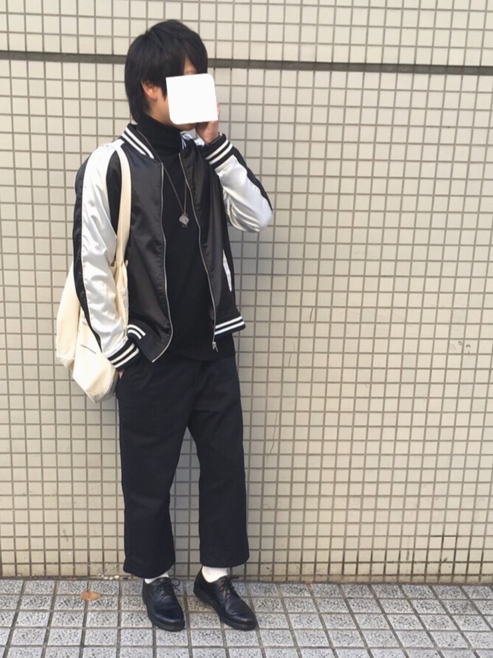 スカジャンにタートルネック×ワイドパンツ×革靴✨ モノトーンコーデ! Iラインコーデ! ずっと欲しかったダニエルウェリントンを買いました😂 写真じゃ見えないので、別ショットにわかるように載せてあります! 🙌 革靴率高いです😎