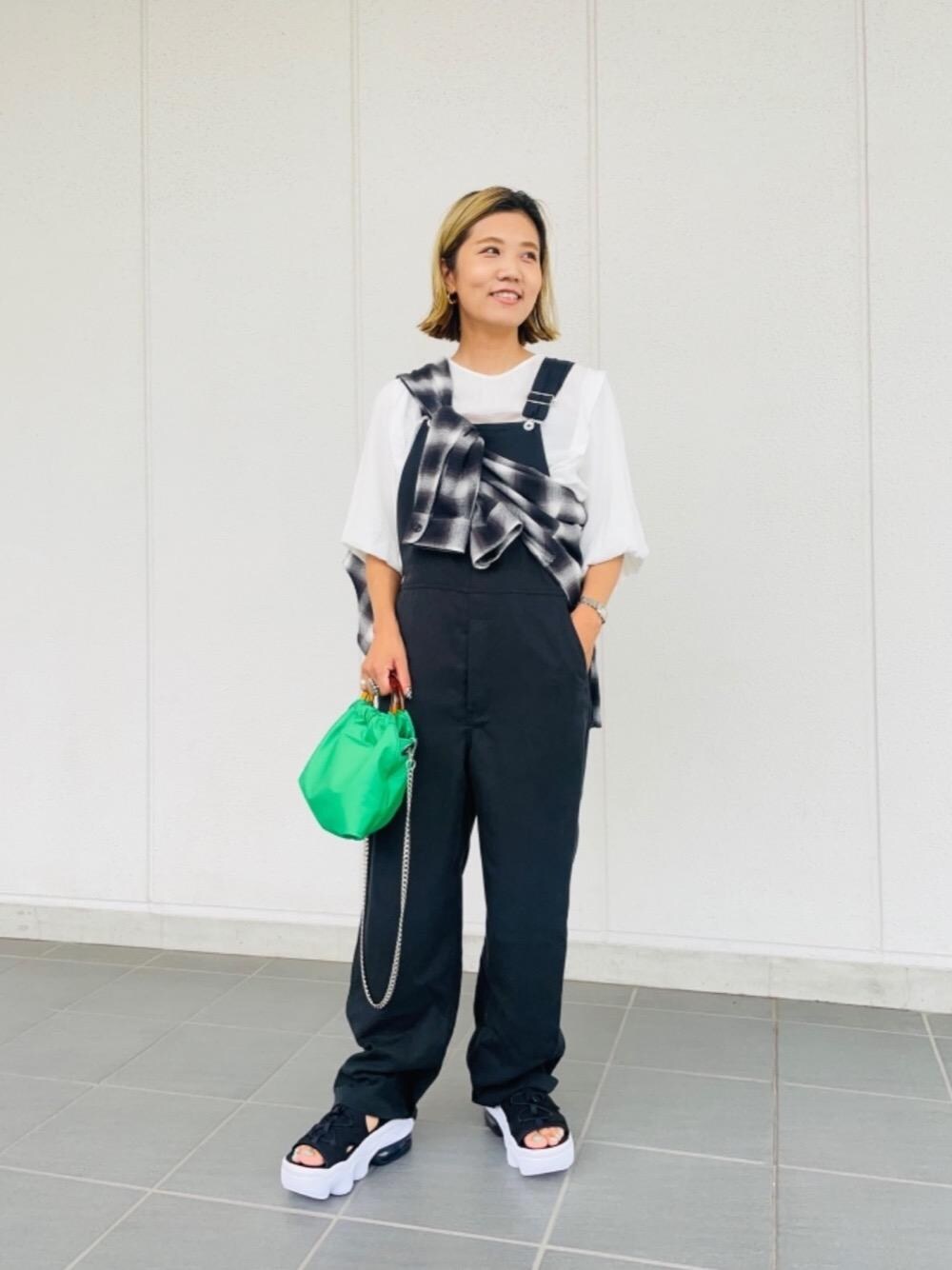 ●身長:154cm ●普段サイズ:アウターSサイズ/ボトムスSサイズ/シューズ23cm 【サイズ感】 ●オーバーオール:標準的なサイズ感です。 ●サンダル:若干小さめの作りの為、1サイズ大きく履いています。アジャスターで調整出来ます。 【素材感・着心地】 ●オーバーオール:落ち感のある素材でオールシーズン着用出来ます。 【コーディネートポイント】 即着出来るアイテムにシャツをたすき掛けして晩夏コーディネートにしました!足元にはトレンド感のあるサンダルを、バッグは個人的に今ハマっているグリーンカラーを合わせてアクセントにしました!別注のシーンゾーンのシャツは程よくゆったりしており、羽織れる季節が待ち遠しいです!