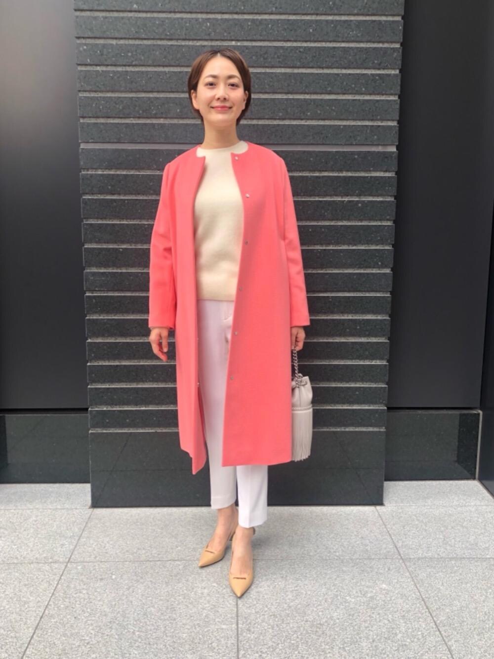 発色の良いピンクのコートを柔らかな印象になるように馴染みやすいカラーで小物をまとめました。 メリハリのあるホワイトコーディネートもこの冬オススメです。