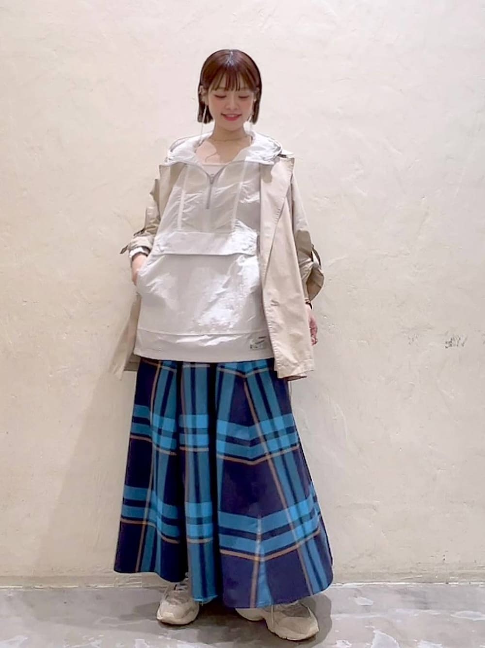スポーティなトップスに フレアスカートを合わせて 大人可愛く着こなしたスタイル♡ トレンチコートは フレアなシルエットですが こんな感じのフレアスカートとも 相性ぴったり!バランス良く着て頂けます!