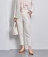 【サイズ感】 ▪︎ジャケット→標準サイズ。ウエストが程よく絞られておりすっきりとした印象でお召しいただけます。 ▪︎ボトムス→標準サイズ。38サイズ着用で長さはくるぶしが隠れるくらいでした。 【コーディネイトのポイント】 きちんと感のあるセットアップスタイルです。 シンプルながらも表情のある生地はお仕事は勿論、式典などでのご利用もお勧めです。 コサージュを着用する事で華やかさをプラスしました。