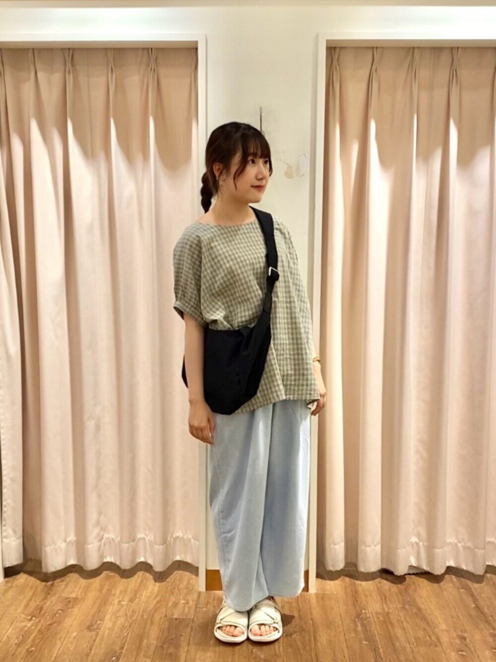 爽やかで挑戦しやすいカラーの緑を着用してます🍀 動きやすいデニムと合わせて、通学しやすいコーディネートを意識しました✨️