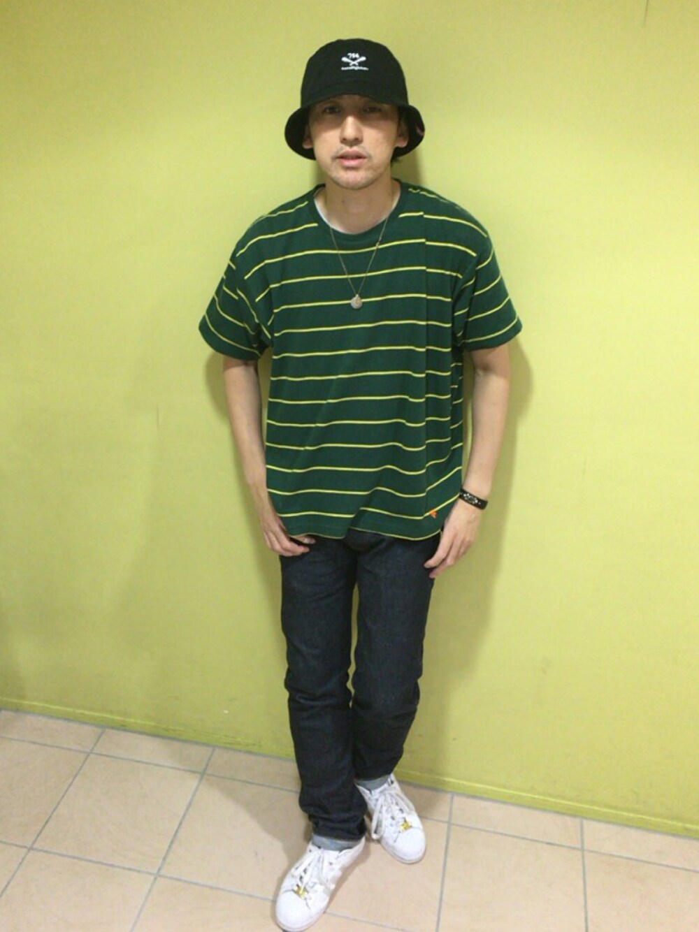 BUCKET HAT corefighter×world wide famous GIANTS BUCKET NECKLACE corefighter BORDER TEE corefighter BRACELET corefighter DENIM PANTS corefighter EAZY RIDE SHOSE adidas sb KAREEM CAMPBELL