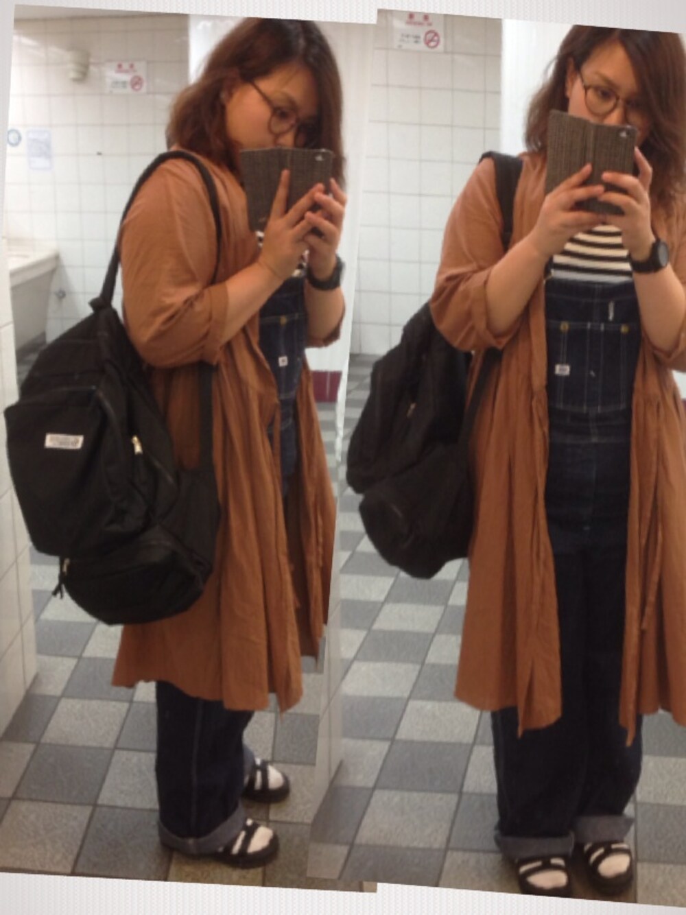 今日もバイトだよー! 昨日アウトレットで買ったリュックを持ってみる。 シャツガウン…ノーブランド オーバーオール…Lee ボーダートップス…H&M サンダル…H&M リュック…ciaopanic 画像変更してみたww