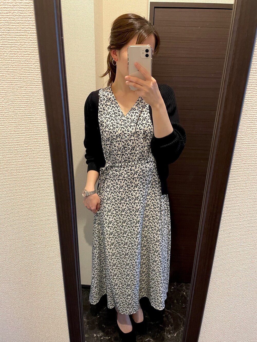 まままのワンピース「Vネックタックフラワーワンピース【WEB限定サイズ】」を使ったコーディネート