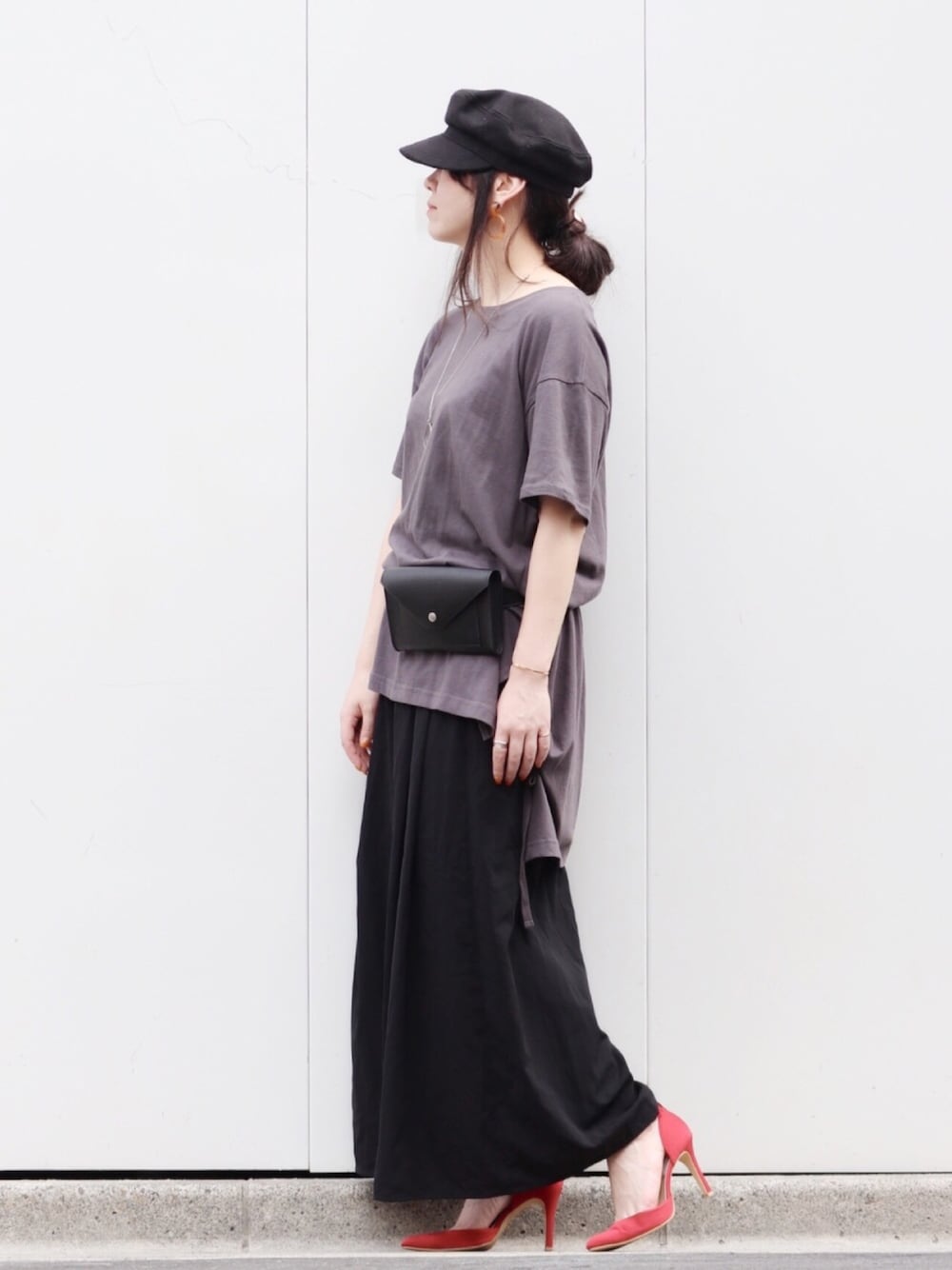 ちぃーのTシャツ/カットソー「裾ドロストチュニックカットソー」を使ったコーディネート