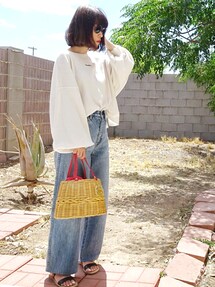 ちぃーのTシャツ/カットソー「クウボウ天竺ねじりチュニックTシャツ」を使ったコーディネート