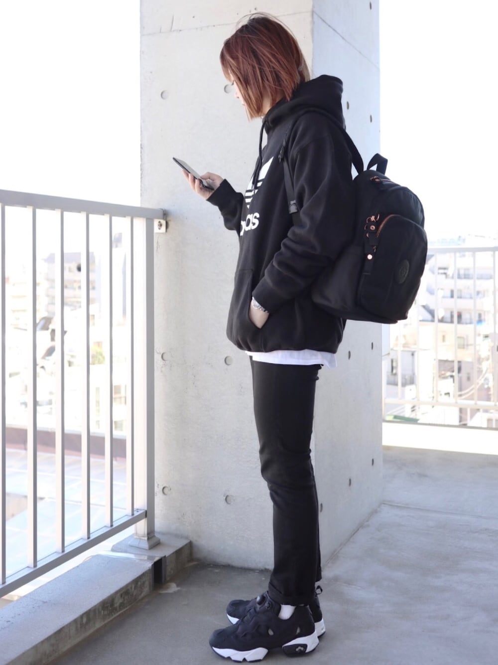 adidasのパーカーに黒スキニーのメンズっぽいコーデ パーカーのインナーに白のオーバーサイズのロンTをレイヤード。・*・:♪ kiplingのリュックはちょうどいい大きさで使いやすいです(* ॑꒳ ॑*) ポケット多くて便利⑅◡̈* Instagramにオリジナルアイテムの詳細とストーリーに撮影のオフショットも載せるのでぜひフォロー頂けたら嬉しいです(*´ `*)*+.♡ いつもイイねお気に入りフォローありがとうございます(´,,•ω•,,)♡ Instagram ▷▷▷ chi0028 プロフにもリンクがあります♬*.+゜ Instagramも是非遊びに来てください⑅◡̈*