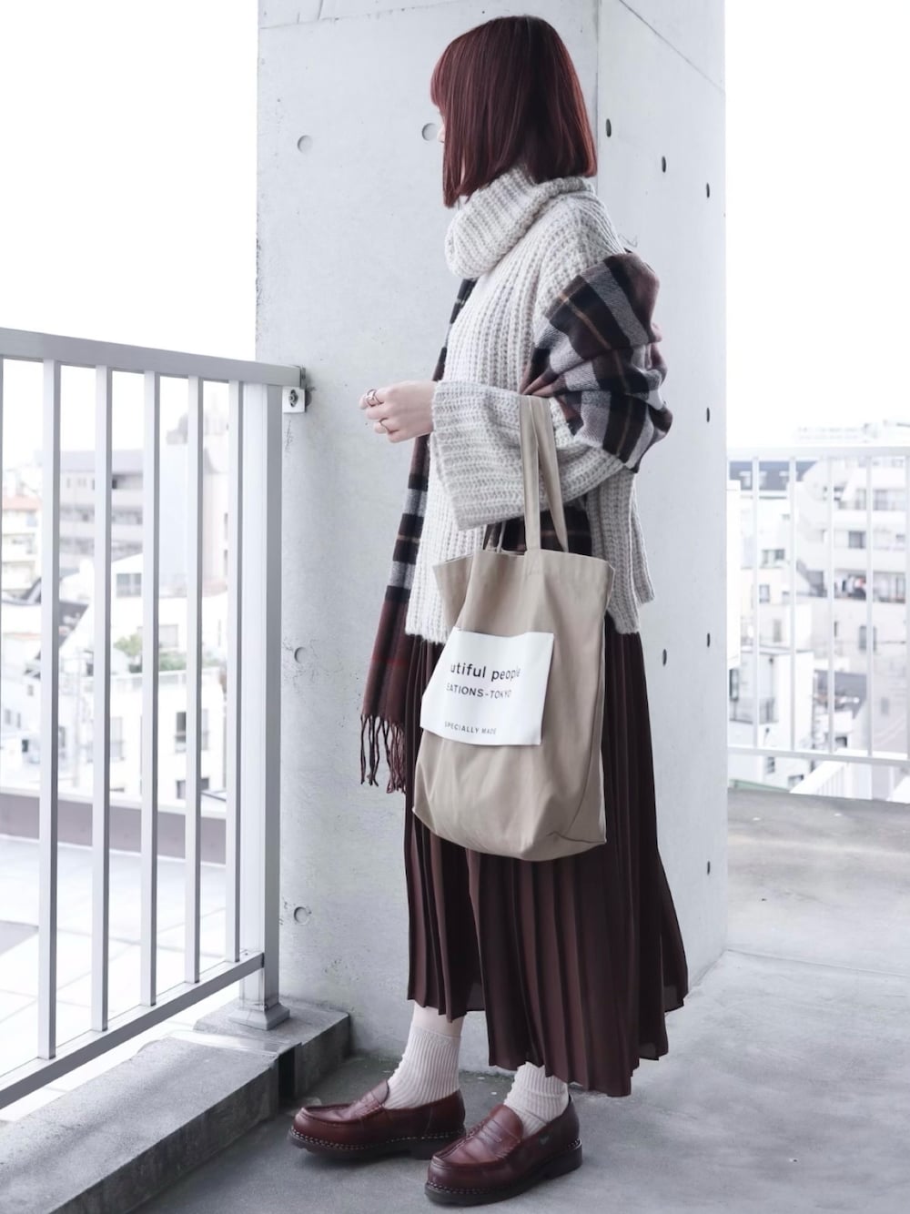 ちぃーのニット/セーター「ざっくり編みタートルネックニット」を使ったコーディネート
