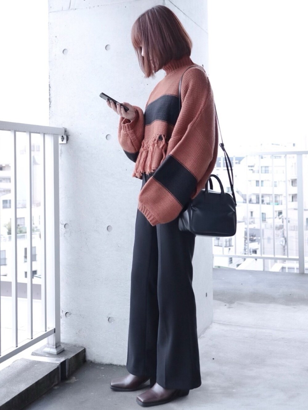 ちぃーのニット/セーター「フリンジラインニット」を使ったコーディネート