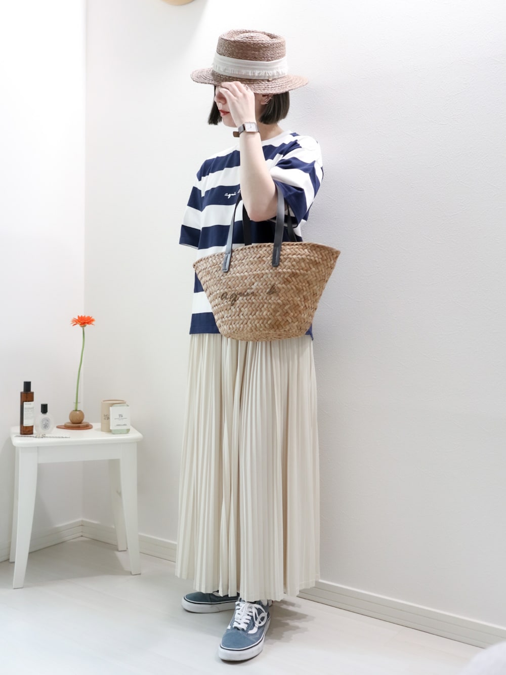 agnesbのカゴバッグとボーダーT 爽やかな印象になるようにスカートはホワイト、スニーカーはボーダーのネイビーに合わせてブルー系で合わせました☺️ Instagramではコーディネートだけではなくカフェやコスメなど好きなものの発信もしてます🤍 WEARと違ったコーデや写真も投稿してます✨ いつもイイねお気に入りフォローありがとうございます(´,,•ω•,,)♡ Instagram ▷▷▷ chi0028 プロフにもリンクがあります♬*.+゜ Instagramも是非遊びに来てください⑅◡̈*