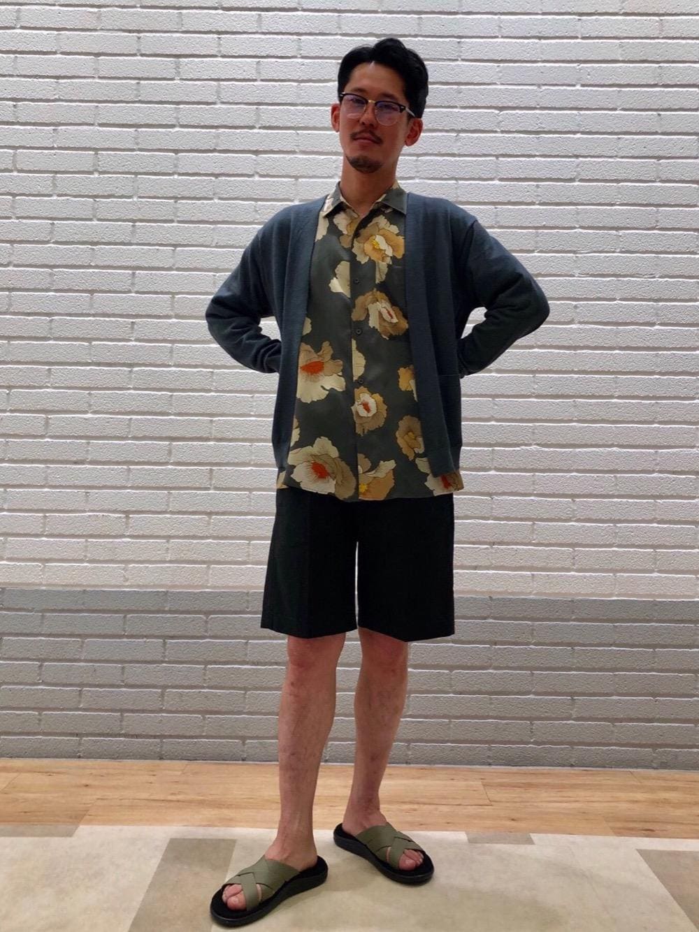 インパクトがあるボタニカル柄のシャツをメインにスタイリングです。 Green×BLACKの2色構成で色味を絞り スッキリした印象にしました。