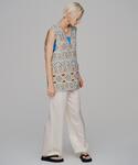 身長:158㎝ 普段サイズ:トップス/S、ワンピース/S、シューズ/23.5㎝ 【サイズ感】 ベスト:ゆったり ワンピース:ゆったり シューズ:37のサイズでジャスト 【コーディネートポイント】 エスニックな雰囲気でスタイリングしました。柄物を2種類入れていますが、間に無地のワンピースを挟みバランスを取りました。