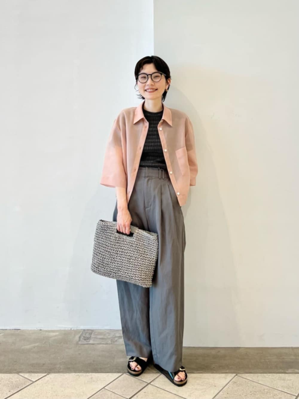 身長:158㎝ 普段サイズ:トップス/S、パンツ/S、シューズ/23.5㎝ 【サイズ感】 シャツ:ゆったり Tシャツ:コンパクト パンツ:S着用。標準的 シューズ:36でジャスト 【コーディネートポイント】 モノトーンのシンプルなスタイリングに、差し色でシャツを合わせてみました!重ね着ですが、シアー素材なので軽やかに決まります。腕の広範囲が隠れるため、紫外線対策にもおすすめです。
