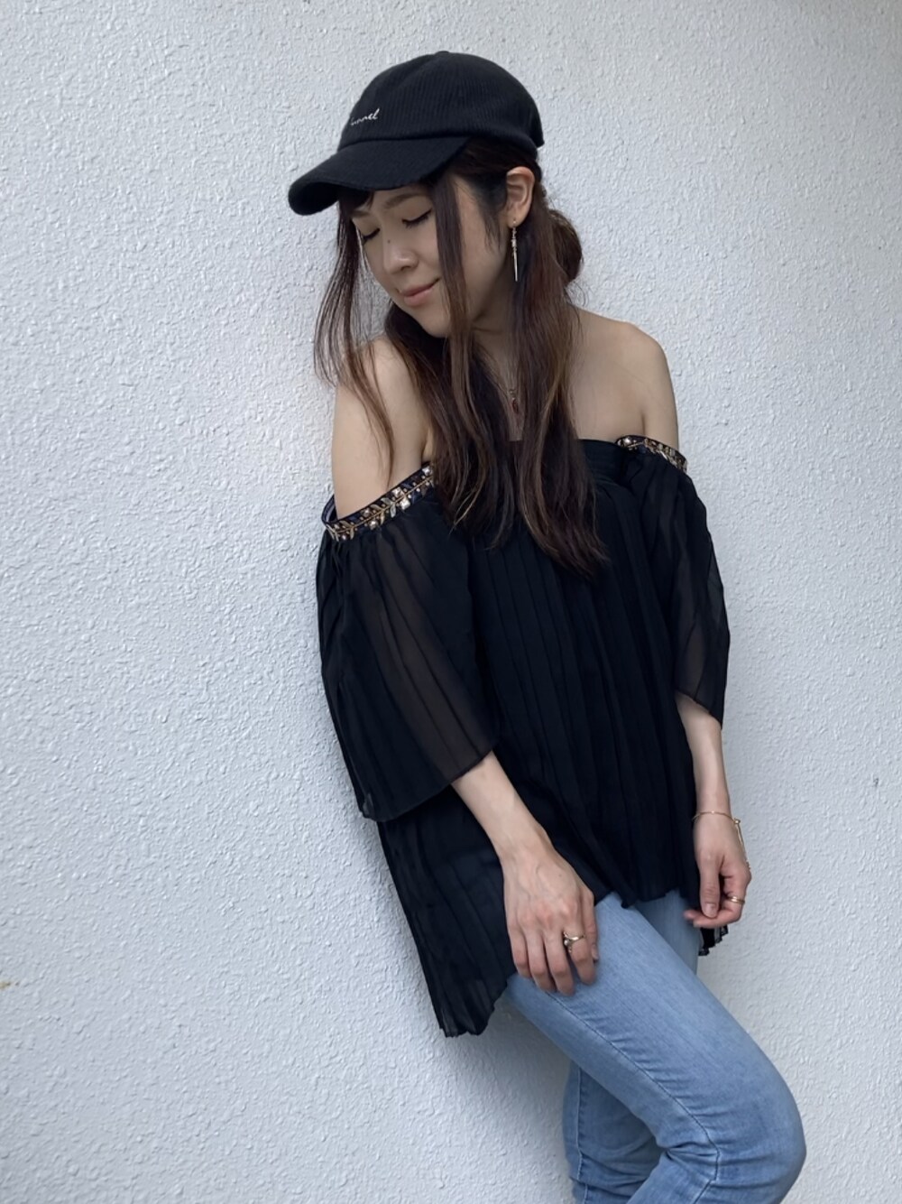 コンバースのスポーティースカートをチュニックにリメイクしました! 今回はオフショルコーデ*.+゚ スクエアネックのチュニックとしても着用できます◎ 袖の縁に刺繍リボンをあしらっていてファッションのアクセントになってます♩