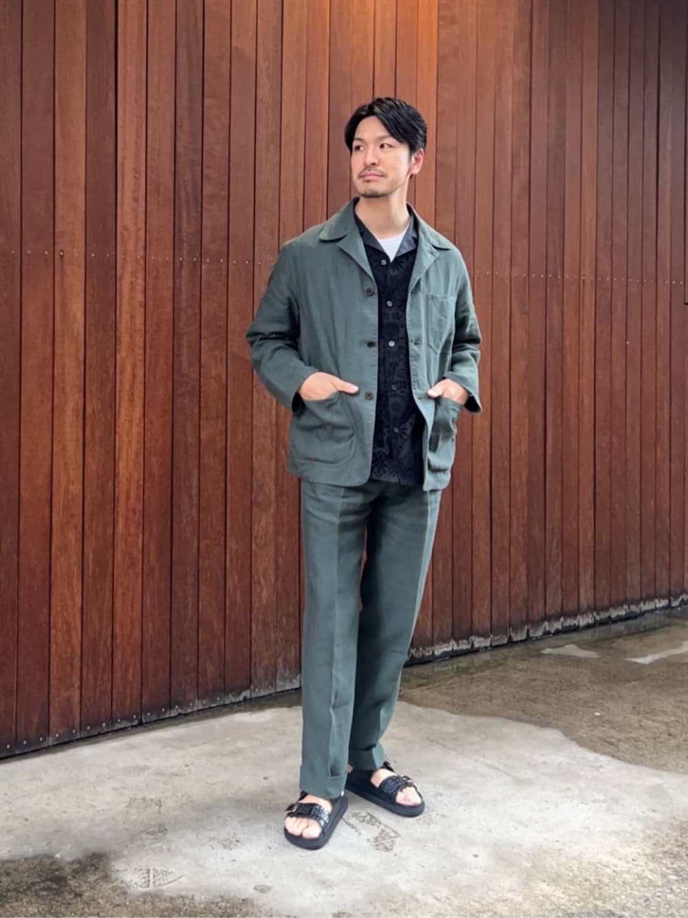 [サイズ感] カバーオール(M):ゆとりありのため1サイズ下を着用 シャツ:ややゆとりあり トラウザーズ(M):ややゆとりありのため1サイズ下でジャストで着用 シューズ(42/26.5cm):標準 [コーディネート] カバーオールジャケットとトラウザーズのセットアップスタイルです。別でテーラードジャケットもありますが、こちらは硬さがなくカジュアルに気軽に切られる雰囲気となります。 サイズは、上下どちらも1サイズ下で着用していますが、ゆったり着られたい方は普段のサイズがおすすめです。 ⭐︎PRE ORDER [サンダル] 品名:【別注】<BIRKENSTOCK>ST BARTHS サンダル 入荷時期:6月上旬予定