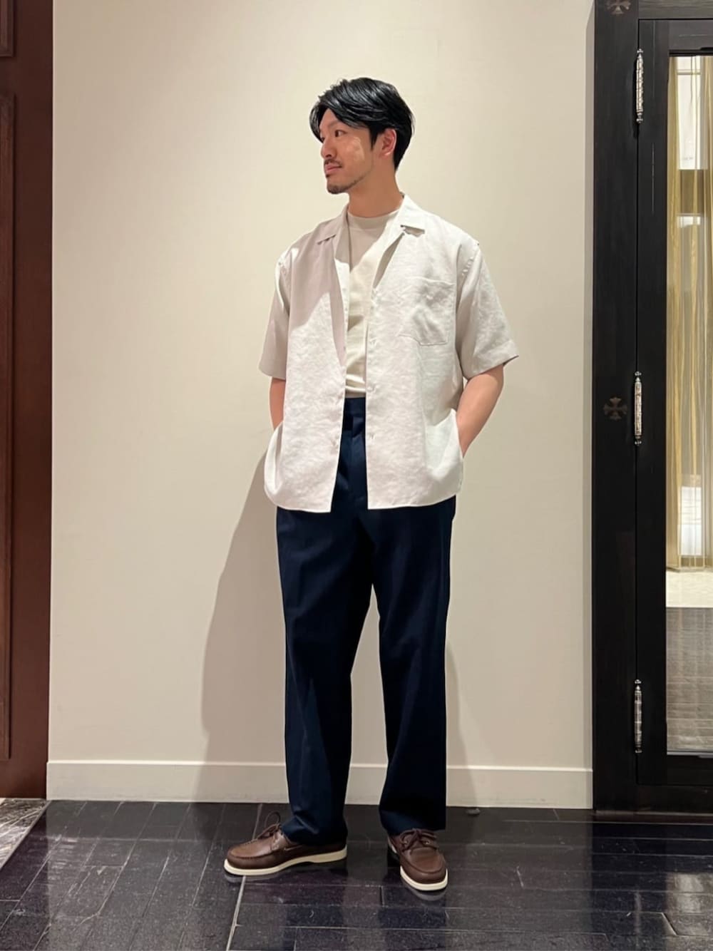 藤原(ユナイテッドアローズ 丸の内店)のシャツ/ブラウス「ツイル オープンカラー ショートスリーブシャツ」を使ったコーディネート