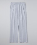 サイズ感] ニットTシャツ(L):ややゆとりあり パンツ(L):ゆったり ワイドシルエット シューズ(42/27.5cm):標準サイズ [コーディネート] ざっくりとした生地感の半袖ニットに、ストライプのパンツで清涼感のあるコーディネート。パンツがワイドシルエットなので、シューズをややシャープなもので合わせ、品よく見せています。