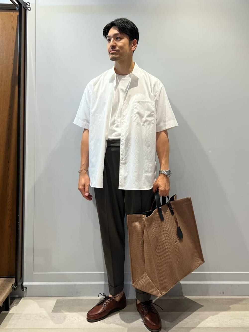 藤原(ユナイテッドアローズ 丸の内店)のシャツ/ブラウス「ポプリン ソリッド ショートスリーブ シャツ」を使ったコーディネート