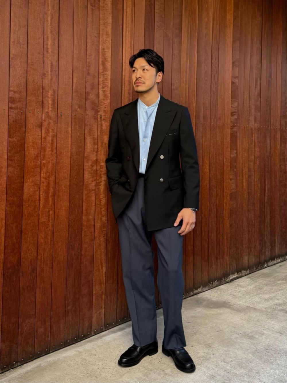 藤原(ユナイテッドアローズ 丸の内店)のテーラードジャケット「ウールモヘヤ 4ボタン ダブルブレストブレザー」を使ったコーディネート