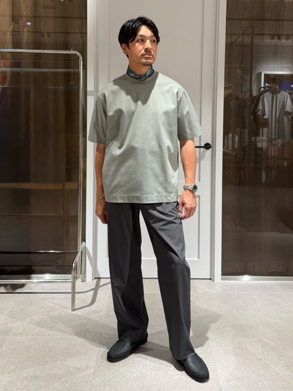 [サイズ感] Tシャツ(L):ややゆとりあり パンツ(L):ゆとりあり シューズ(43):ちょうどいいサイズ感 <BENSON SHOE> 近日発売予定 ※普段の靴サイズ 革靴:27cm スニーカー:28.5cm [コーディネートのポイント] きれいな表面感のポンチTシャツをさらっとしてゆとりのあるパンツで合わせました。 きれいめな印象で、着心地はリラックス感があるので夏に試していただきたいコーディネートです! ※本社にてサンプルで撮影