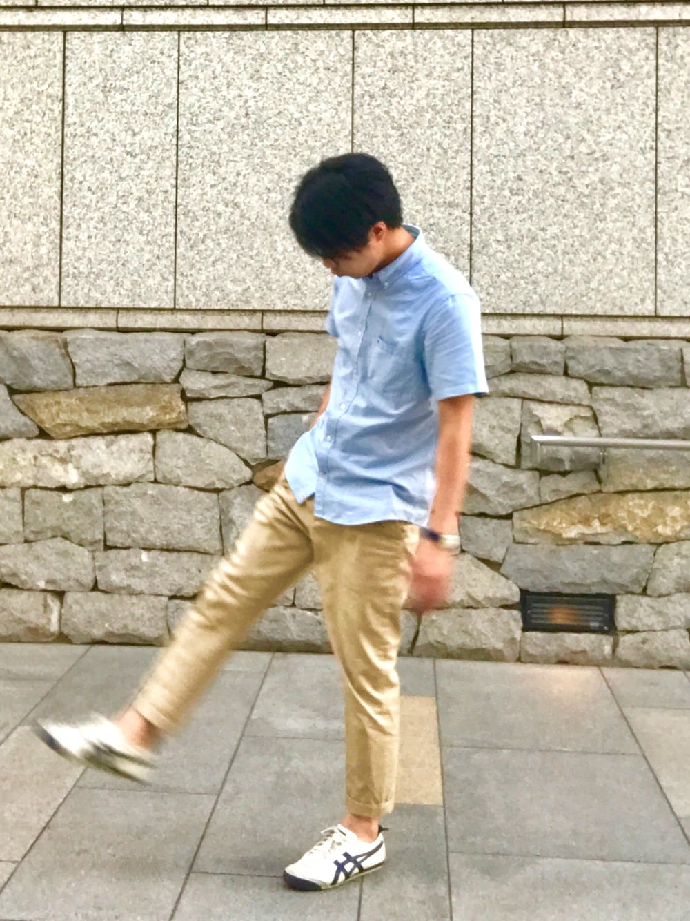 WEARの写真の写り方、「WEAR立ち」の参考になればと思って撮影しました。 今回はよくあるポーズ、通称「リフティング」。 何も無いのにまるでサッカーボールがそこにあるような立ち方が特徴的です。 皆もポーズに困ったら、何も無い空間を蹴り上げてみよう!それっぽくなります!