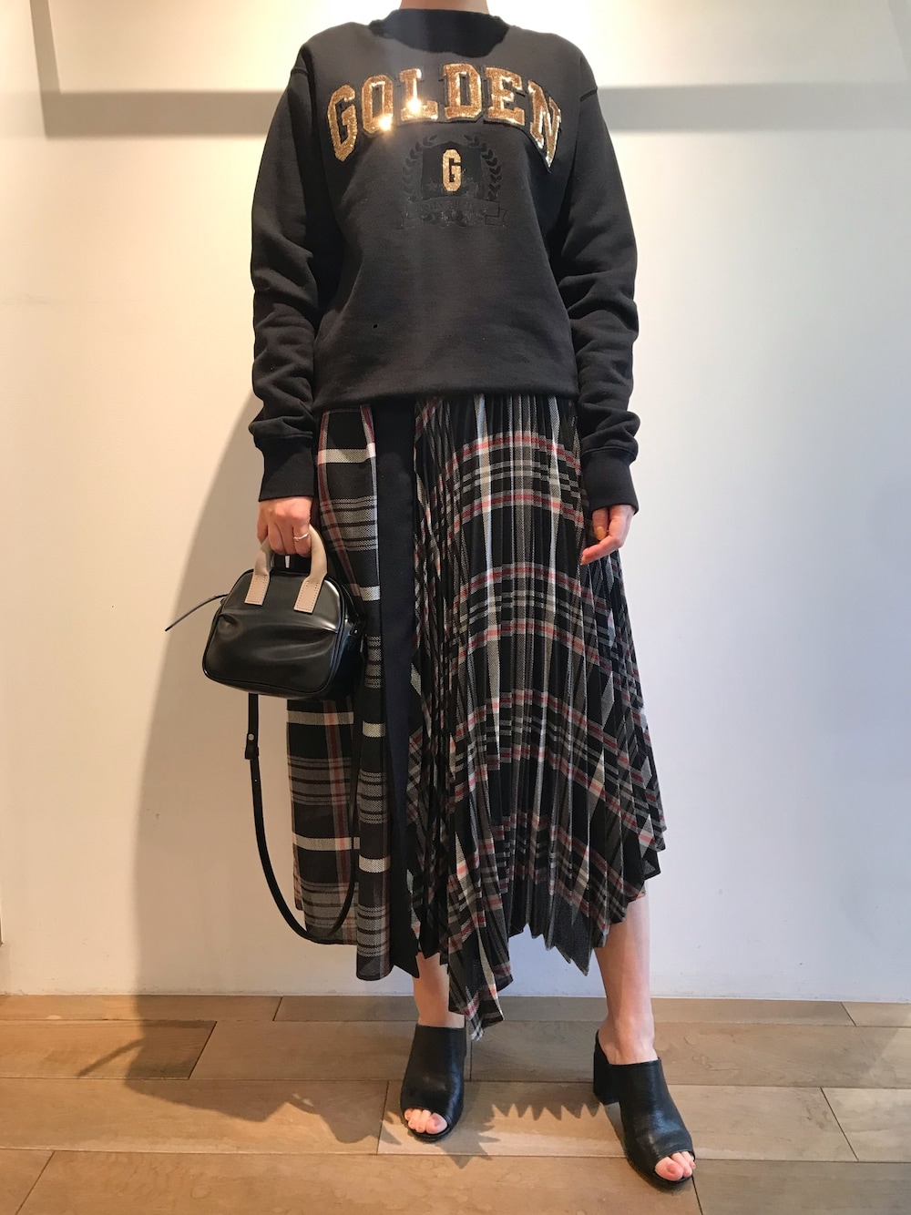 全身ブラックコーディネート、チェックやスパンコールでオシャレな雰囲気にしてみました。