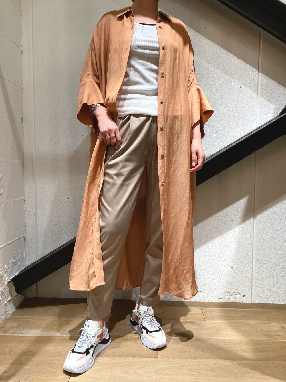 夏のベージュコーディネート。