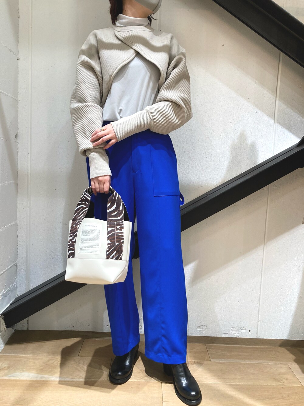 ブルーのパンツコーディネート。