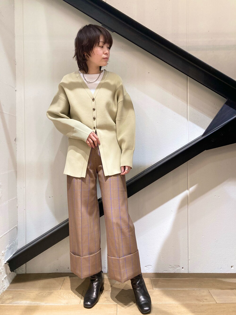 DROITBELLOの新作カーディガンを 使ったコーディネート。